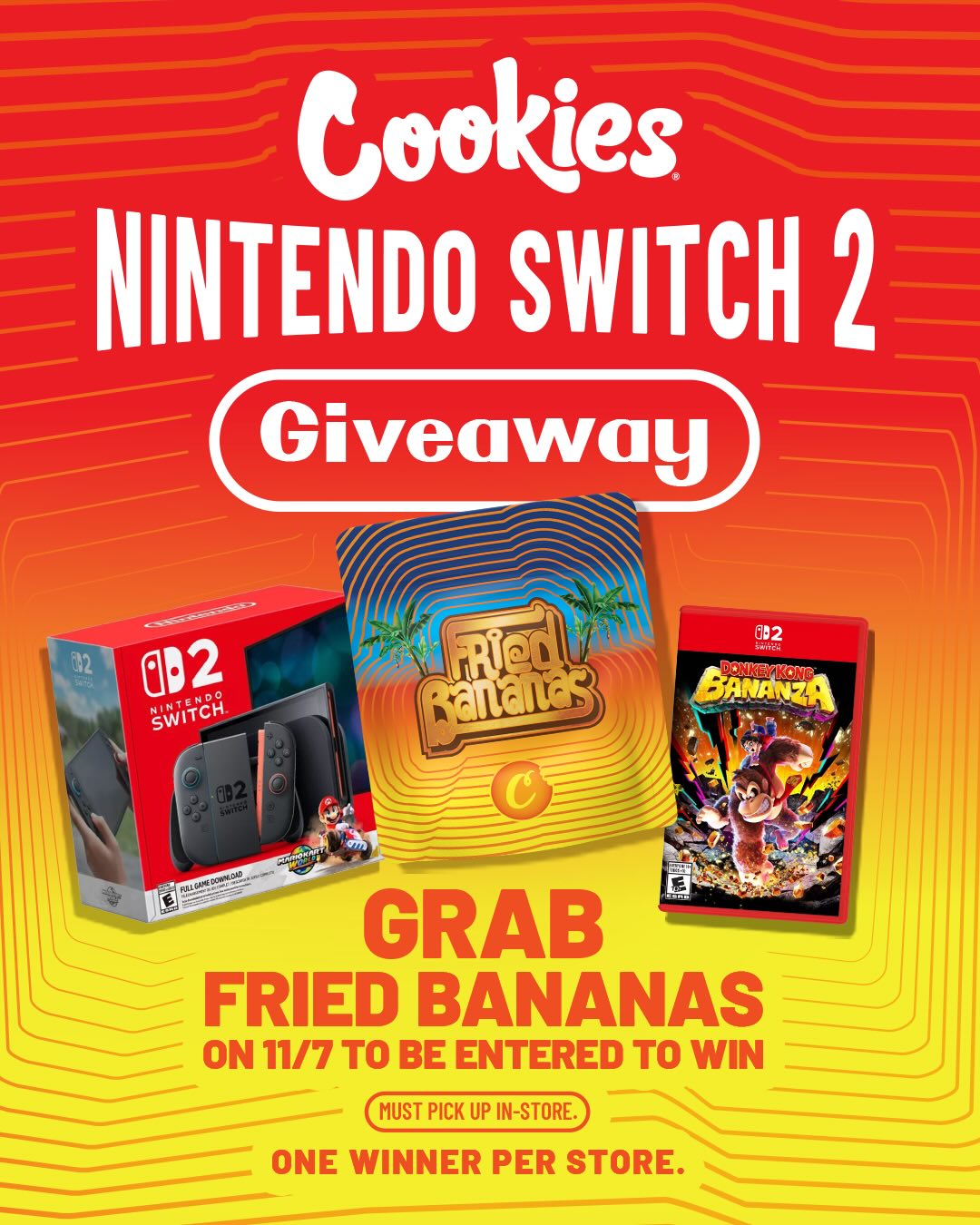 To celebrate the release of Fried Bananas, Cookies New Jersey and Illinois are giving away a Nintendo Switch 2! Check out the details below: